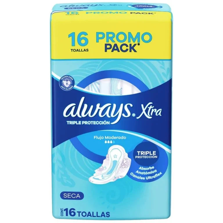 Toallas Always Xtra Triple Protección Suave cuenta cob absorción instantánea y duradera, ajuste perfecto para hasta 0% derrames, centro de