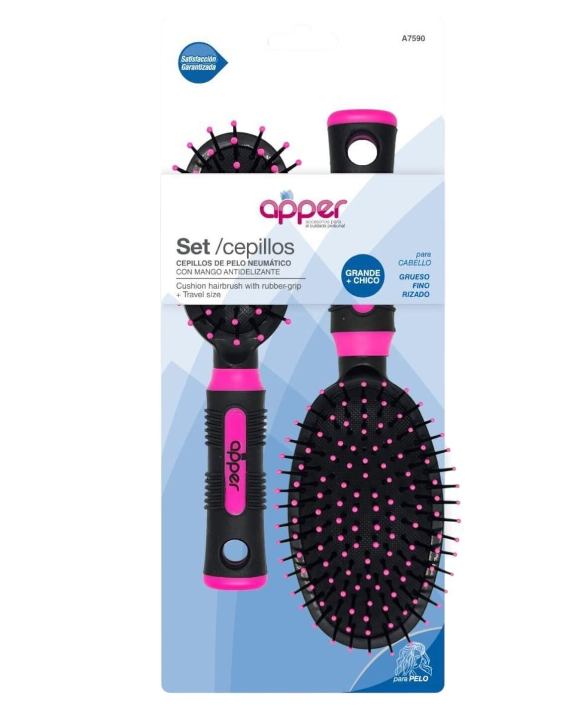 Set de cepillos grande y chico antideslizante. Con cerdas de nailon con punta esférica.