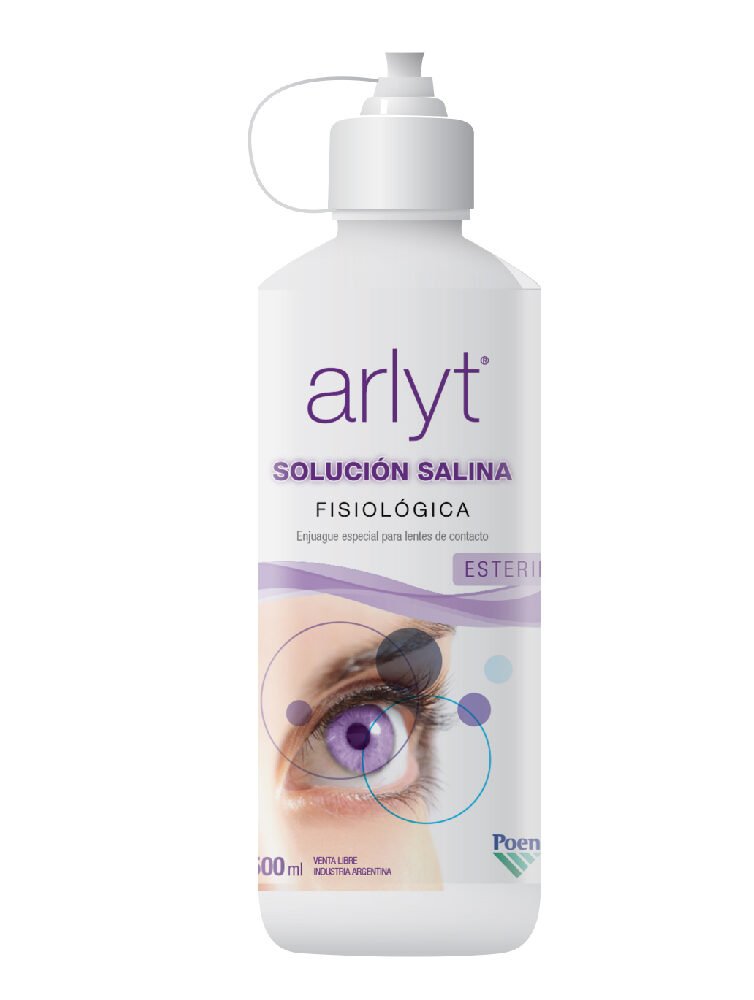 Solución Salina Enjuague especial lentes de contacto Arlyt. MODO DE USO DIARIO: Una vez que haya lavado sus manos, sacar la lente de contacto y enjuagar por unos segundos con Solución Salina Fisiológica