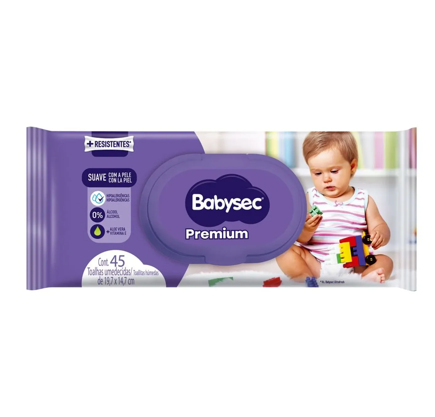 Toallitas Húmedas Premium extra suaves, hipoalergénicas, 0% alcohol con Vitamina E y Aloe Vera.