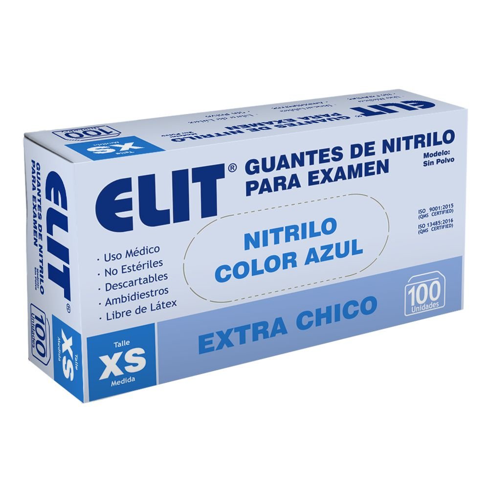 Elit Guantes Examen Nitrilo S/Polvo XS Azul X100