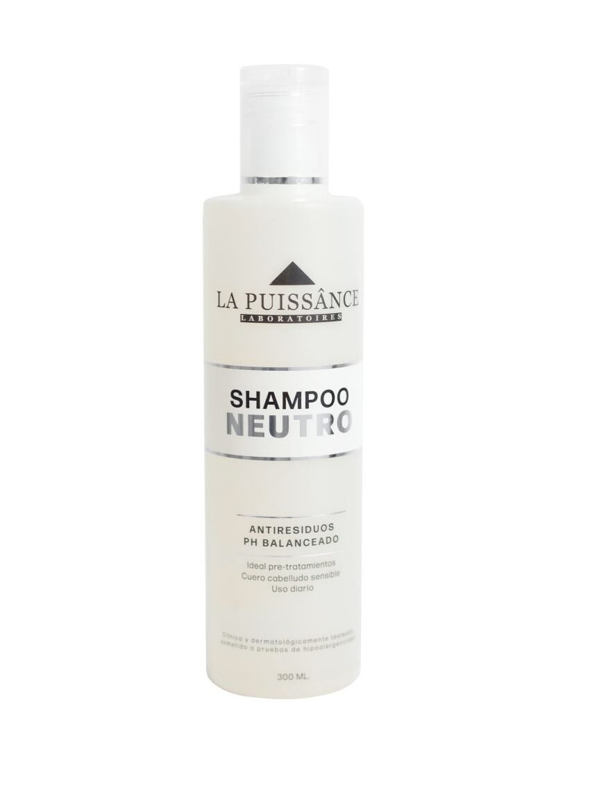 Shampoo Neutro La Puissance Ph Balanceado 300ML La puissance crean esta formula nueva Anti residuos, ideal para cueros cabelludos sensibles que necesitan una preparación para un tratamiento profesional como puede ser un alisado, una coloración permanente o semipermanente, o simplemente, al ser hipoalergénica.