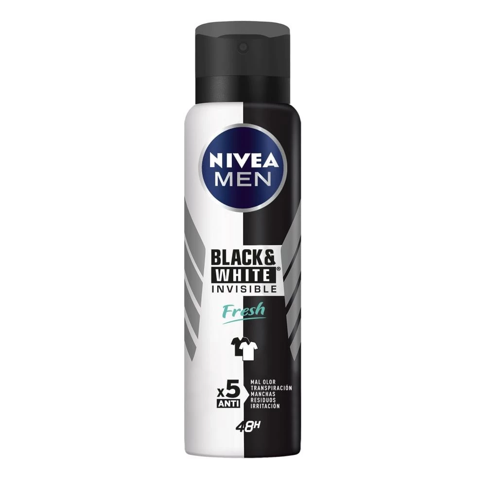 El antitranspirante NIVEA MEN Black & White Fresh te brinda 48 hs de protección antitranspirante y una fragancia refrescante de larga duración, sin dejar manchas blancas en tu ropa negra y reduciendo las manchas amarillas en tu ropa blanca. De esta manera el negro queda negro y, por primera vez, el blanco queda blanco por más tiempo.