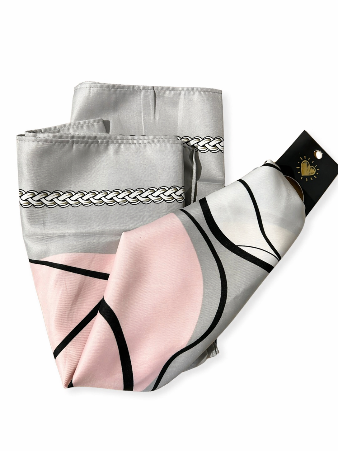 Este pañuelo de seda combina un diseño elegante en tonos gris, blanco y rosa,de estética moderna y elegante. Confeccionado en tejido suave y liviano, ofrece una caída delicada y un acabado de calidad. Su formato versátil permite múltiples usos: al cuello, en el cabello o como accesorio para realzar carteras. Ideal para complementar looks tanto formales como casuales con un toque sofisticado.Sus medidas son: 90 x 90.