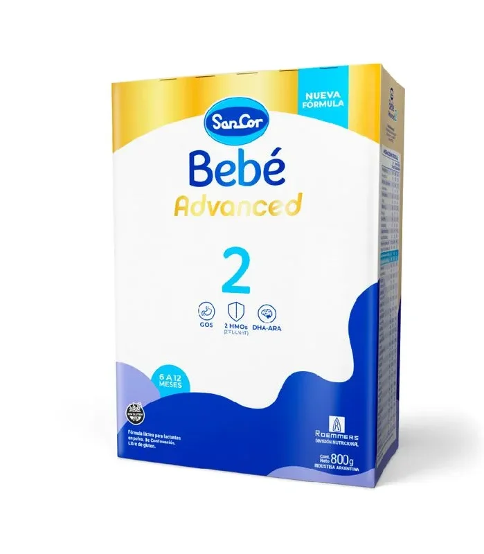 SanCor Bebé 2 Advanced es una fórmula láctea para lactantes en polvo. De Continuacion de 6 a 12 meses.Libre de gluten.