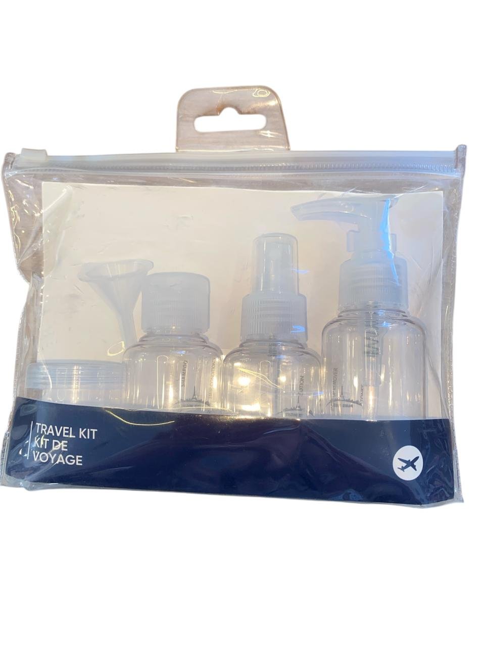 El set viene en una bolsa transparente con cierre hermético, permitiendo un acceso rápido y cumpliendo con las normas de equipaje de mano.