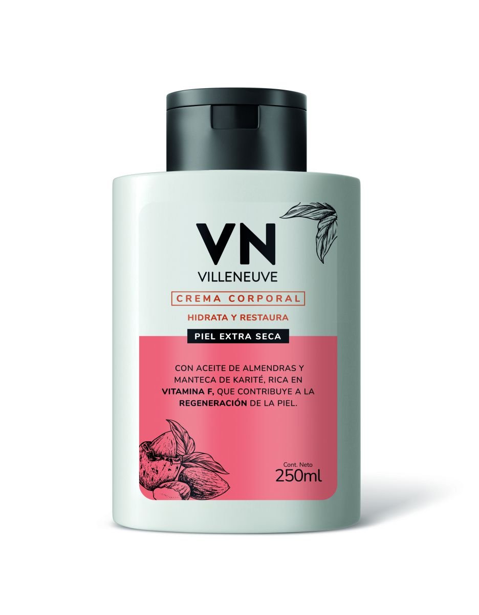 Una solución intensiva para el cuidado diario de la piel muy seca: esta crema corporal de la línea VN está formulada para hidratar, nutrir y restaurar la barrera de la piel en etapas de sequedad extrema. Gracias a su combinación de aceite de almendras y manteca de karité, rica en vitamina F, la piel recupera elasticidad y vitalidad.